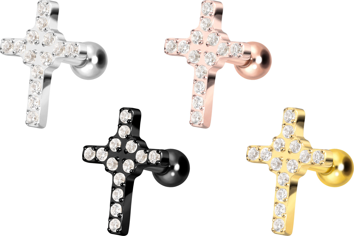 Titan Ohrpiercing mit Innengewinde KRISTALLKREUZ