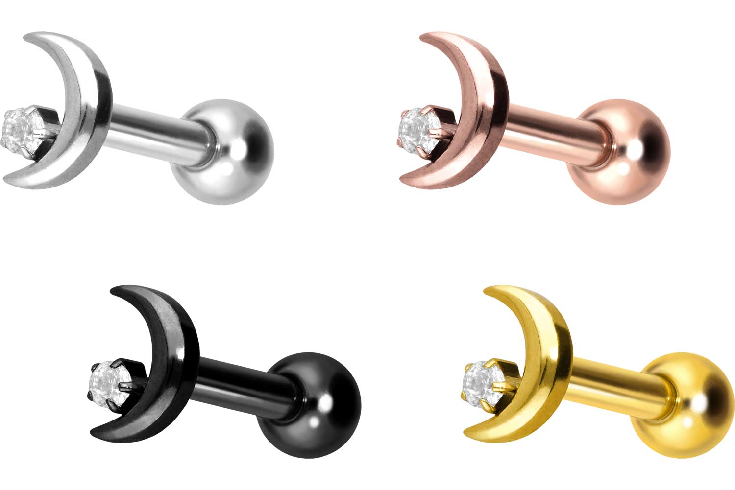 Titan Ohrpiercing mit Innengewinde MOND + KRISTALL