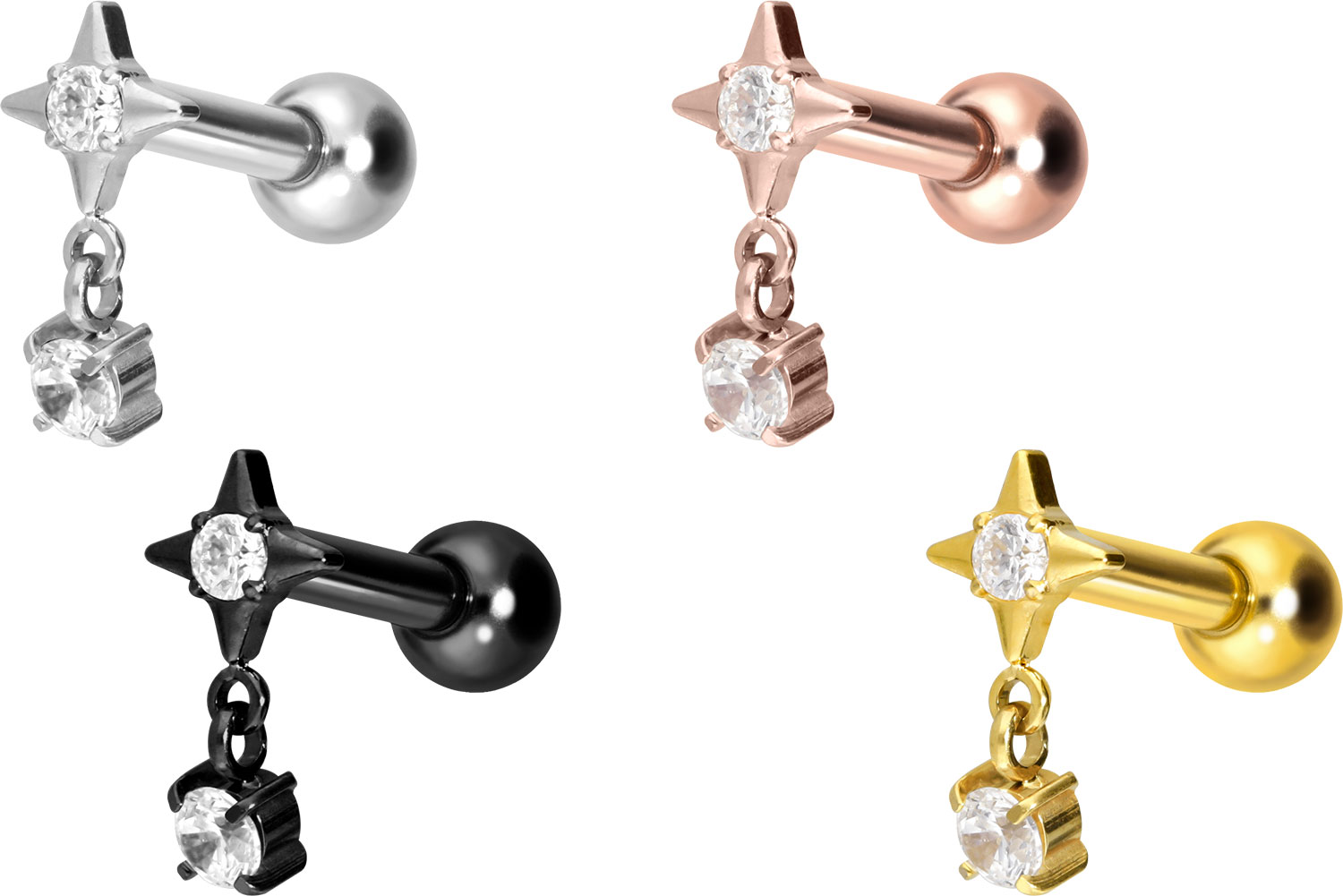 Titan - Ohrpiercing mit Innengewinde Stern + Kristall
