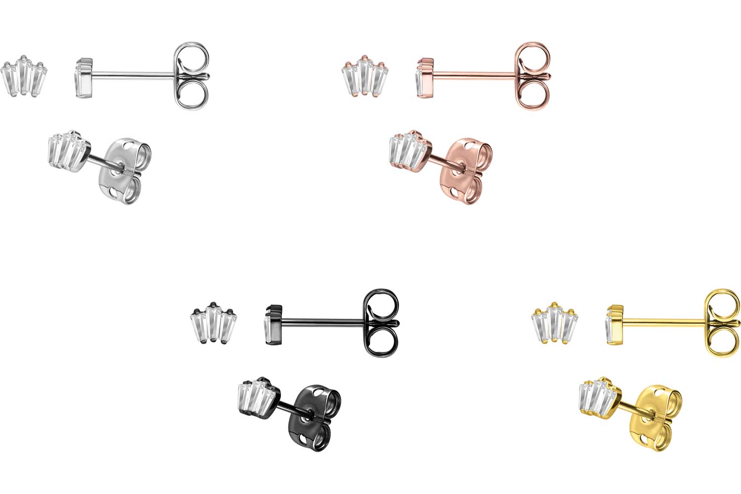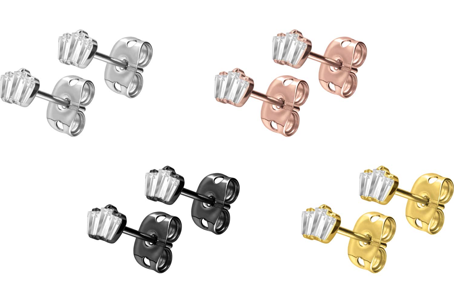 Diese zeitlos schönen Ohrstecker bestehen aus hochwertigem Titan, das sich unter anderem durch gute Hautverträglichkeit und hohe Beständigkeit auszeichnet. Ebenfalls zu seinen spezifischen Materialeigenschaften gehört Farbechtheit, die auch bei den Varianten mit PVD-Beschichtung gewährleistet wird. Beide Stecker sind mit je drei eingefassten Kristallrechtecken verziert und erstrahlen so in voller Pracht. Sie werden darüber hinaus, wie abgebildet, paarweise geliefert.