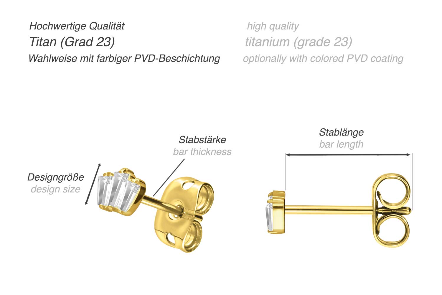 Titan Ohrstecker 3 EINGEFASSTE KRISTALLRECHTECKE