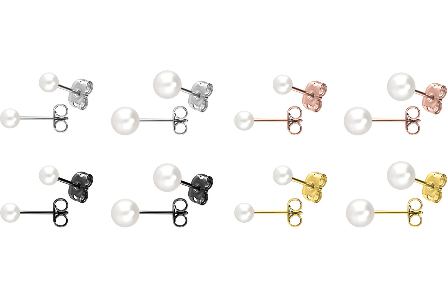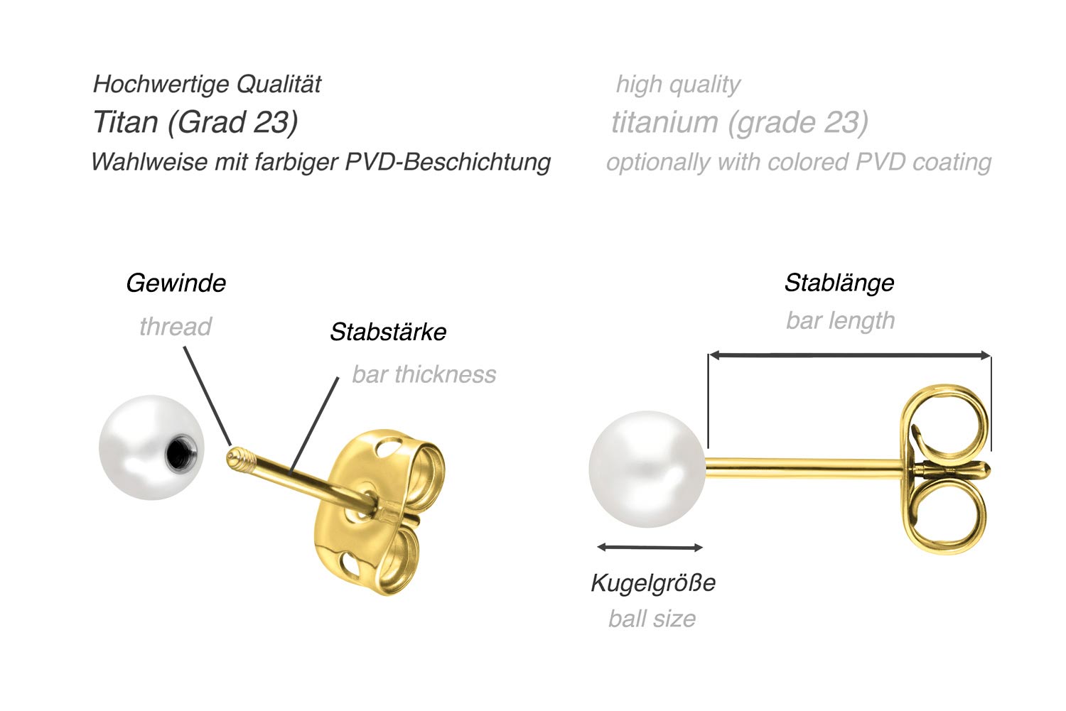 Beständigkeit auszeichnet. Ebenfalls zu seinen spezifischen Materialeigenschaften gehört Farbechtheit, die auch bei den Varianten mit PVD-Beschichtung gewährleistet wird. Die echten Frischwasserperlen, die auf das entweder 1,2 mm oder 1,6 mm starke Gewinde geschraubt sind, wirken aufgrund ihres schlichten Designs besonders ansprechend. Außerdem werden die Ohrstecker wie abgebildet paarweise geliefert.
