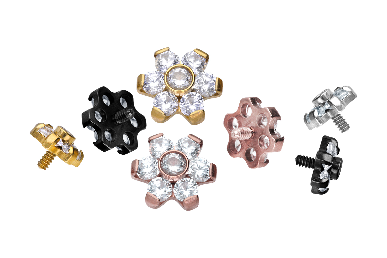 Titan - Schraubdisc mit Außengewinde Blume mit 7 Kristallen
