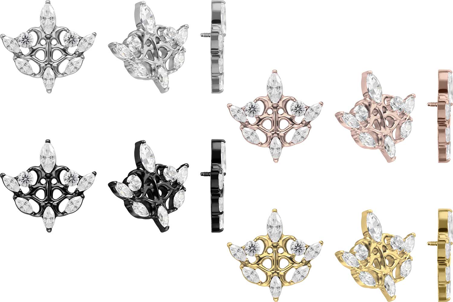 Dieser zeitlos schöne Schraubaufsatz in Form eines gotischen Designs wurde speziell für unsere Innengewinde-Piercings entwickelt und besteht aus hochwertigem Titan, das sich unter anderem durch gute Hautverträglichkeit und hohe Beständigkeit auszeichnet. Ebenfalls zu seinen spezifischen Materialeigenschaften gehört Farbechtheit, die sowohl bei der silberfarbenen als auch bei der schwarzen, gold- und roségoldfarbenen Variante mit PVD-Beschichtung gewährleistet wird. Das 0,9 mm starke Außengewinde des Aufsatzes ist mit all unseren Produkten, die über ein solches Innengewinde verfügen, kompatibel, sodass sich vielfältige Kombinationsmöglichkeiten ergeben.
