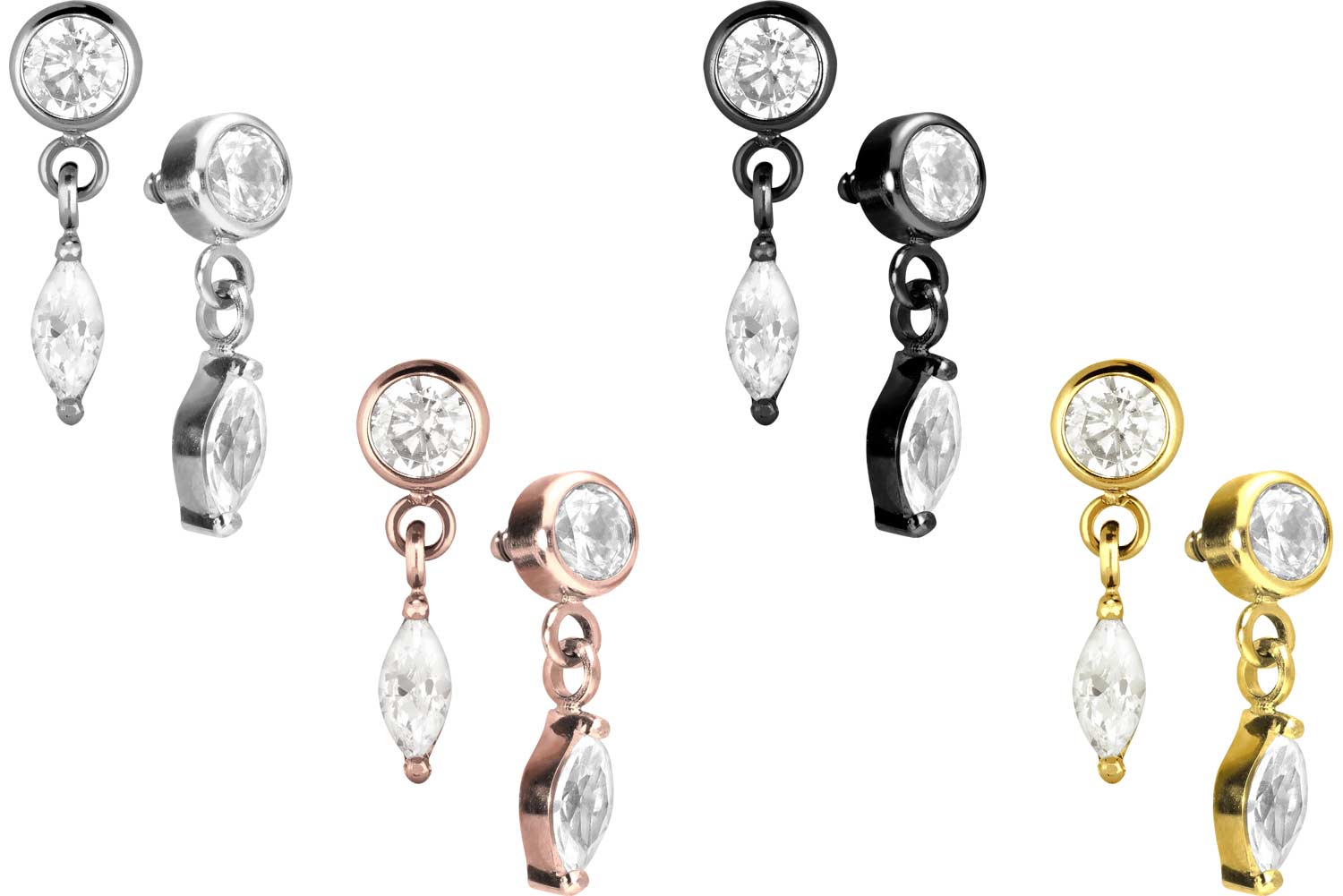 Dieser zeitlos schöne Schraubaufsatz in Form eines funkelnden Kristalls, an welchem ein weiterer Kristalltropfen befestigt ist, wurde speziell für unsere Innengewinde-Piercings