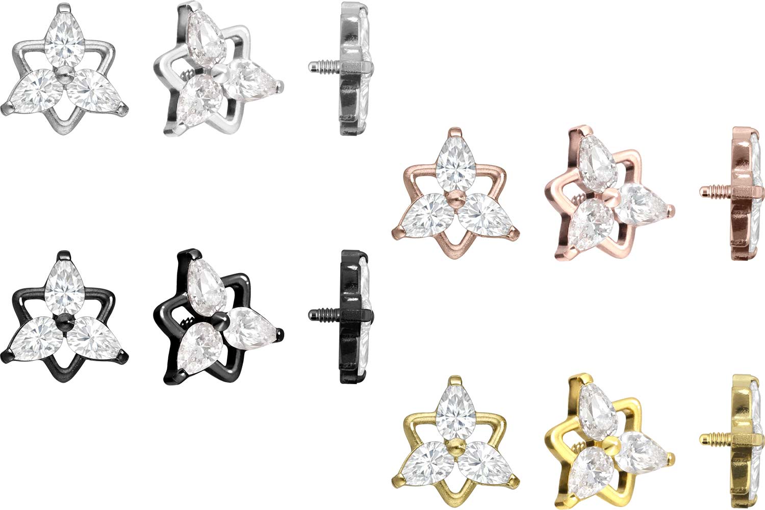 Dieser zeitlos schöne Schraubaufsatz in Form einer Kristallblume wurde speziell für unsere Innengewinde-Piercings