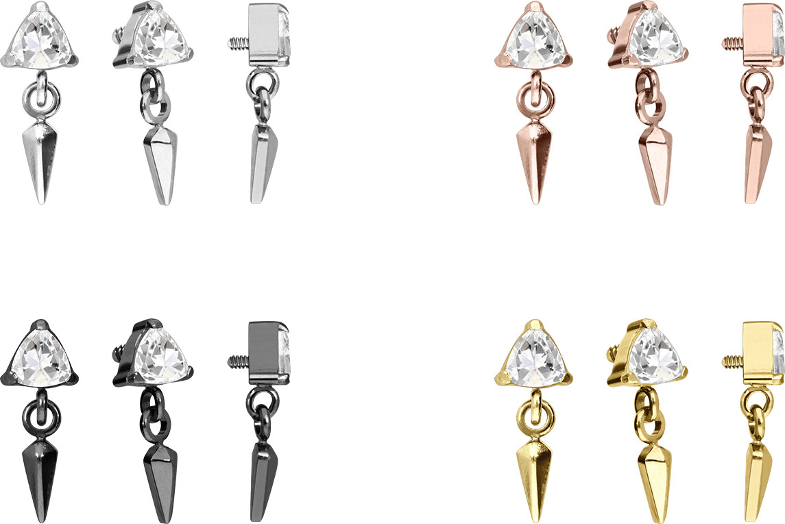 Dieser zeitlos schöne Schraubaufsatz in Form eines funkelnden Kristalldreiecks, an welchem eine Spitze befestigt ist, wurde speziell für unsere Innengewinde-Piercings