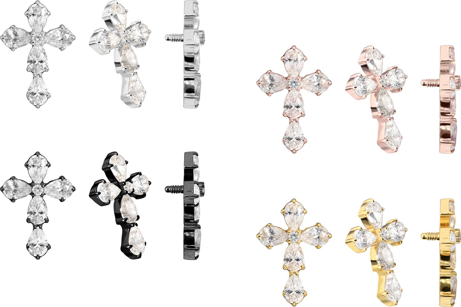 Dieser zeitlos schöne Schraubaufsatz in Form eines Kristallkreuzes wurde speziell für unsere Innengewinde-Piercings entwickelt und besteht aus hochwertigem Titan, das sich unter anderem durch gute Hautverträglichkeit und hohe Beständigkeit auszeichnet. Ebenfalls zu seinen spezifischen Materialeigenschaften gehört Farbechtheit, die sowohl bei der silberfarbenen als auch bei der schwarzen, gold- und roségoldfarbenen Variante mit PVD-Beschichtung gewährleistet wird. Das 0,9 mm starke Außengewinde des Aufsatzes ist mit all unseren Produkten, die über ein solches Innengewinde verfügen, kompatibel, sodass sich vielfältige Kombinationsmöglichkeiten ergeben.