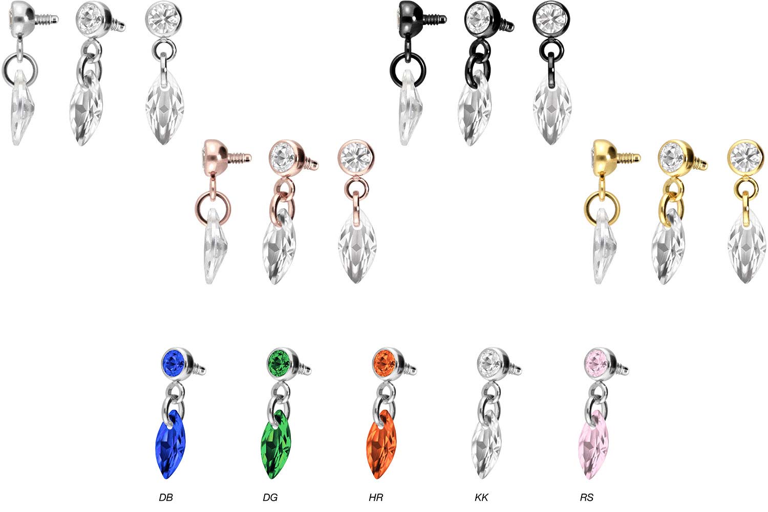 Kristallfarbe: dunkelblau / dunkelgrün / hellrot / kristallklar / rosa