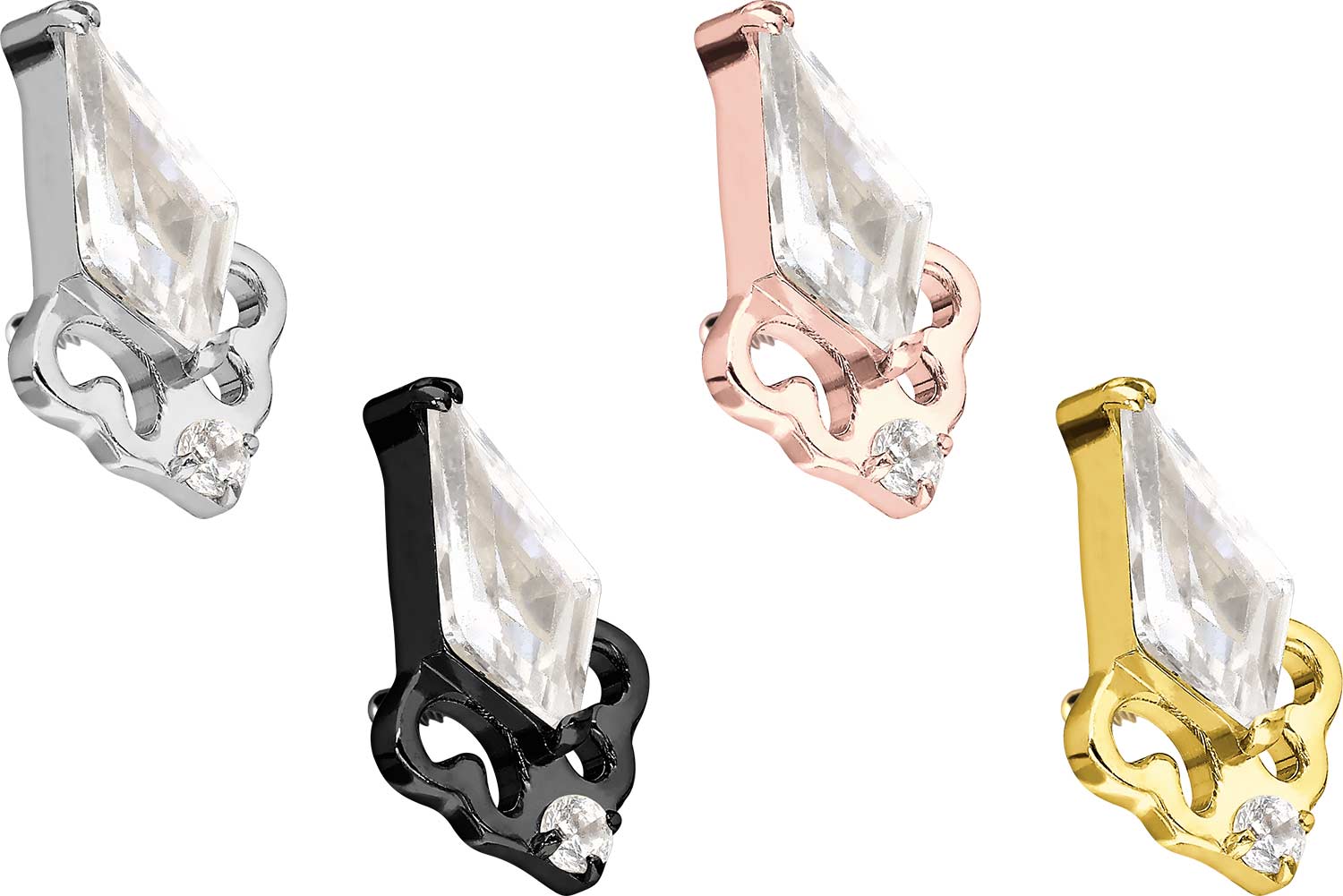 Dieser zeitlos schöne Schraubaufsatz in Form eines Kristallschilds wurde speziell für unsere Innengewinde-Piercings entwickelt und besteht aus hochwertigem Titan, das sich unter anderem durch gute Hautverträglichkeit und hohe Beständigkeit auszeichnet. Ebenfalls zu seinen spezifischen Materialeigenschaften gehört Farbechtheit, die sowohl bei der silberfarbenen als auch bei der schwarzen, gold- und roségoldfarbenen Variante mit PVD-Beschichtung gewährleistet wird. Das 0,9 mm starke Außengewinde des Aufsatzes ist mit all unseren Produkten, die über ein solches Innengewinde verfügen, kompatibel, sodass sich vielfältige Kombinationsmöglichkeiten ergeben.