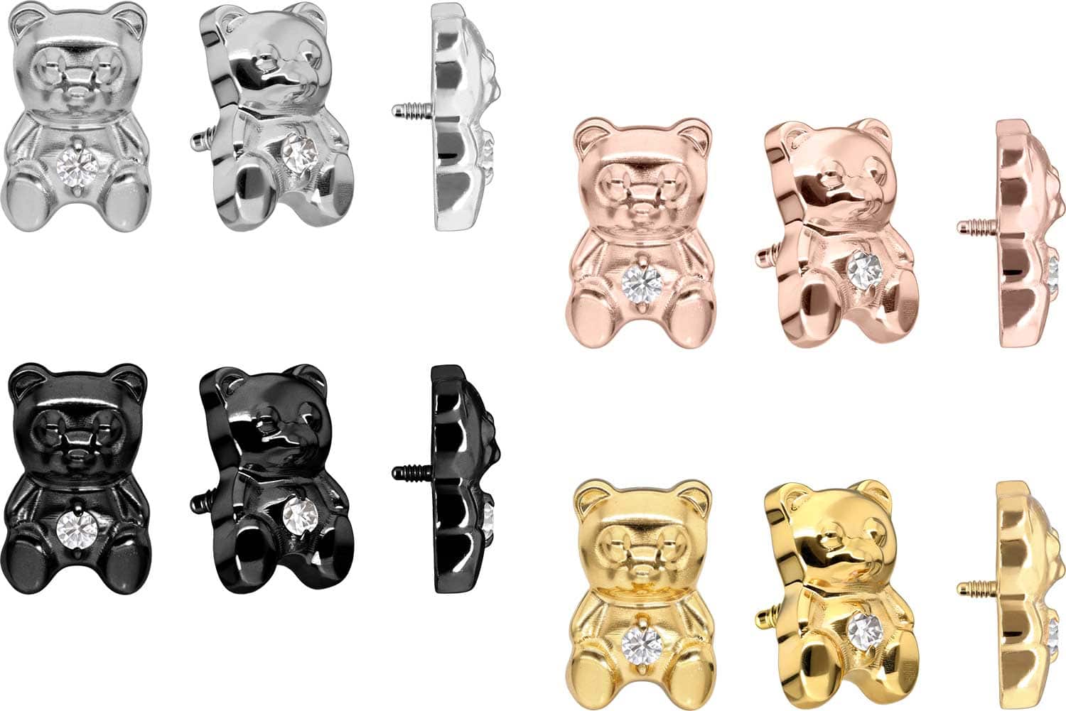 Dieser zeitlos schöne Schraubaufsatz in Form eines Teddybären wurde speziell für unsere Innengewinde-Piercings entwickelt und besteht aus hochwertigem Titan, das sich unter anderem durch gute Hautverträglichkeit und hohe Beständigkeit auszeichnet. Ebenfalls zu seinen spezifischen Materialeigenschaften gehört Farbechtheit, die sowohl bei der silberfarbenen als auch bei der schwarzen, gold- und roségoldfarbenen Variante mit PVD-Beschichtung gewährleistet wird. Das 0,9 mm starke Außengewinde des Aufsatzes ist mit all unseren Produkten, die über ein solches Innengewinde verfügen, kompatibel, sodass sich vielfältige Kombinationsmöglichkeiten ergeben.