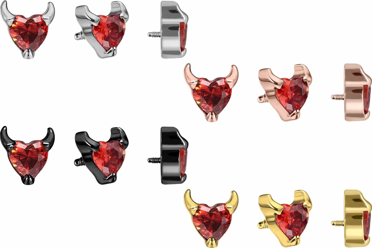 Dieser zeitlos schöne Schraubaufsatz in Form eines Teufelsherzens wurde speziell für unsere Innengewinde-Piercings entwickelt und besteht aus hochwertigem Titan, das sich unter anderem durch gute Hautverträglichkeit und hohe Beständigkeit auszeichnet. Ebenfalls zu seinen spezifischen Materialeigenschaften gehört Farbechtheit, die sowohl bei der silberfarbenen als auch bei der schwarzen, gold- und roségoldfarbenen Variante mit PVD-Beschichtung gewährleistet wird. Das 0,9 mm starke Außengewinde des Aufsatzes ist mit all unseren Produkten, die über ein solches Innengewinde verfügen, kompatibel, sodass sich vielfältige Kombinationsmöglichkeiten ergeben.