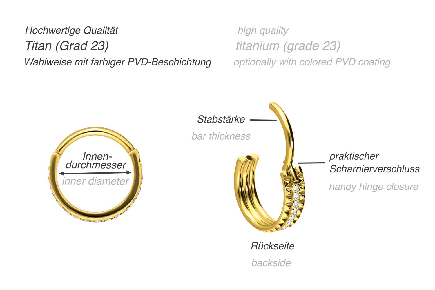 Titan - Segmentring Clicker Nieten + eingefasste Kristalle