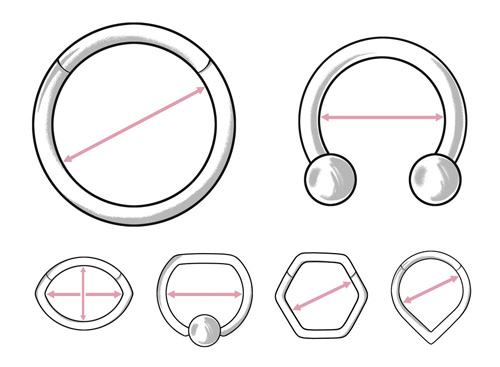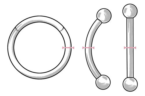 Die Größe von ringförmigen Artikeln – besonders Piercing-Ringen – ist bestimmt durch ihren Innendurchmesser.