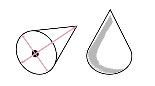 Bei Aufsätzen in Form eines Kegels bezeichnet die Spitzengröße sowohl die Höhe des Kegels als auch den Durchmesser seiner Basis.
